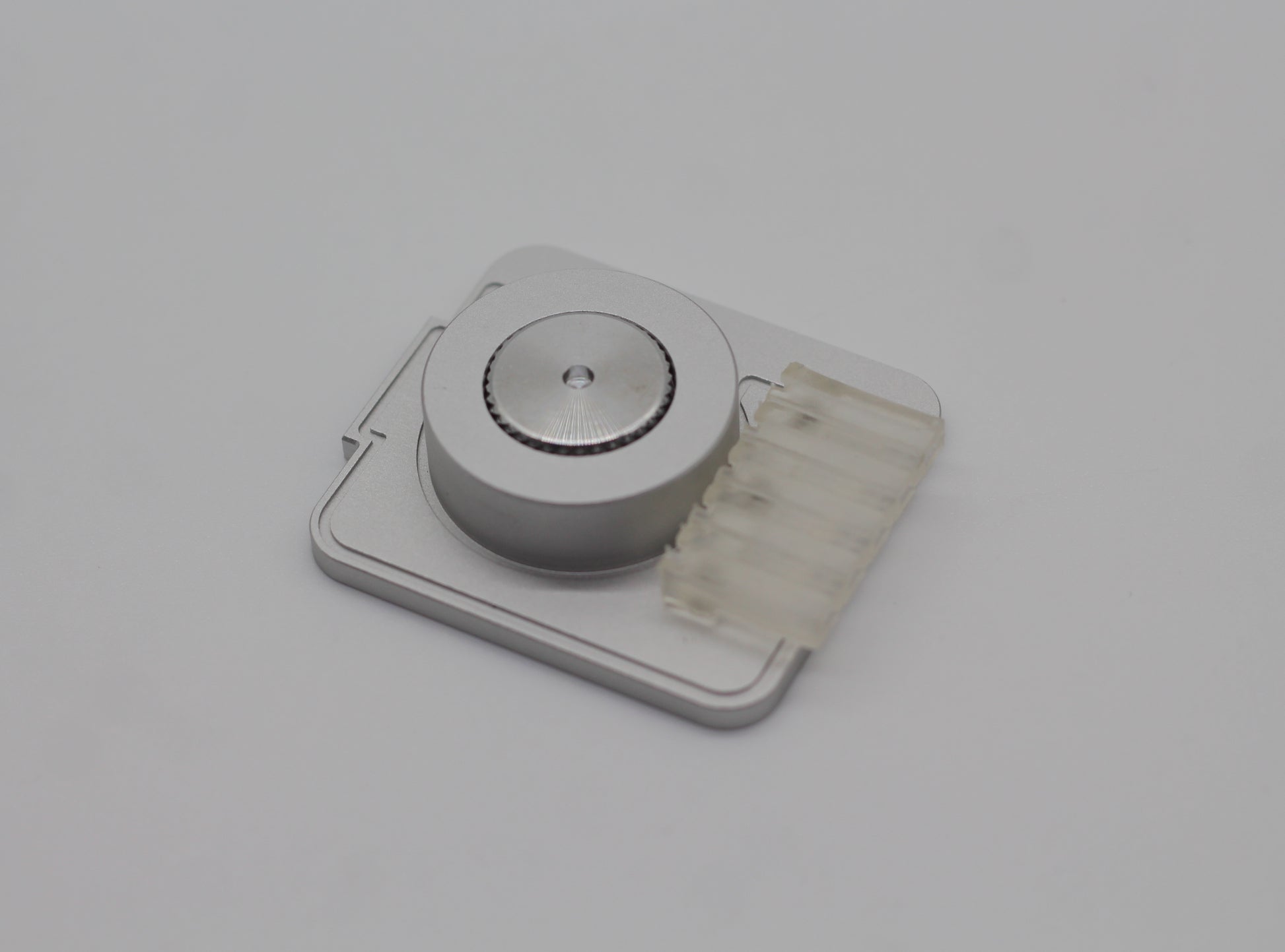 It is made of CNC aluminum and translucent resin. There is a threaded M4 hole at the bottom for attachment.